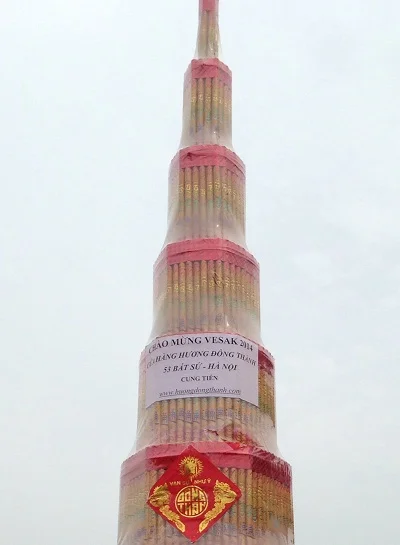 Lễ vật các đoàn cung tiến đại lễ — Công ty Hương Đông Thành cung tiến đôi tháp hương 9 tầng phục vụ lễ khai mạc Vesak 2014